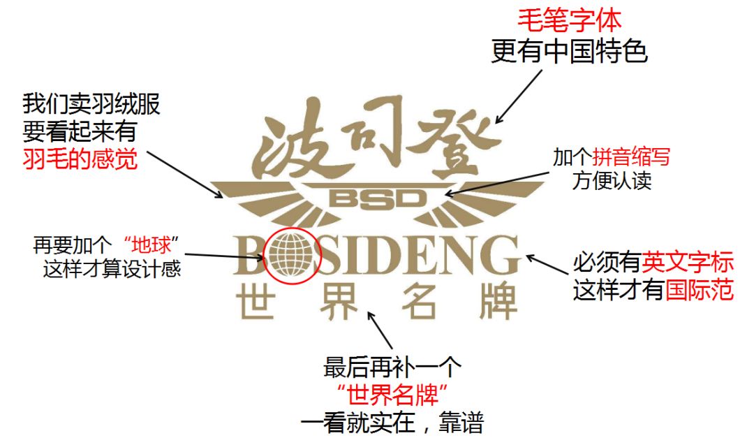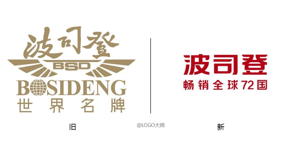 简化字体设计,从“波”和“登”字的笔划里,会找到一些翅膀飞扬的感觉。而Slogan将“世界名牌”改成“畅销全球72国”,通过使用更有说服力的数字来证明自己是“世界名牌”。
