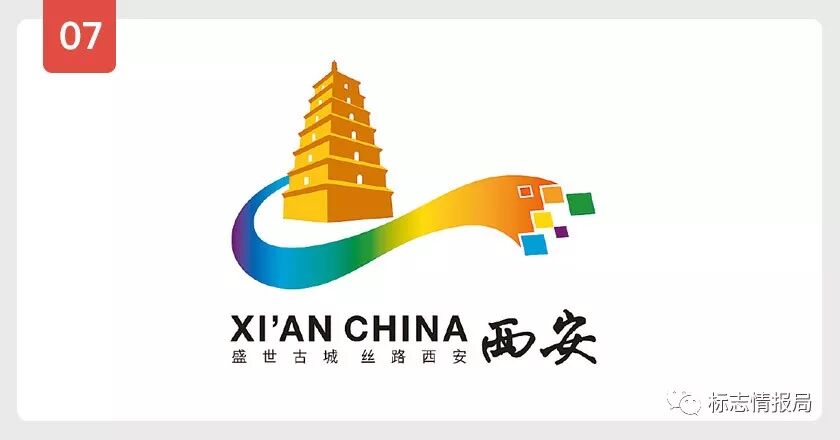 作者贺琦,LOGO释义:标志以富有西安代表性建筑“大雁塔”为主核心设计延伸而来,结合色彩斑斓的丝带元素,展现出富有辉煌人文历史的“丝绸之路”与现代化人文气息,体现了中国传统文化和西安历史地域特征,也体现了西安作为著名风景旅游城市的特点。标志下部长红丝带恰似一条宏观的发展之路,块面型象征着多元化的城市体系,象征西安迅速有力的发展趋向和富有人文、旅游、科技、生态、时尚于一体的国际智慧之都。金色的“大雁塔”体现了西安作为历史文化名城的底蕴;色彩斑斓的丝带又象征着今天的国际化大西安正扬帆起航,积极进取、意气风发的精神风貌。